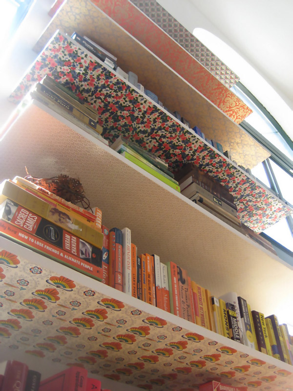 Osvježite svoje police za knjige na neobičan način – obložite ih ukrasnim tapetama ili papirom s donje strane.