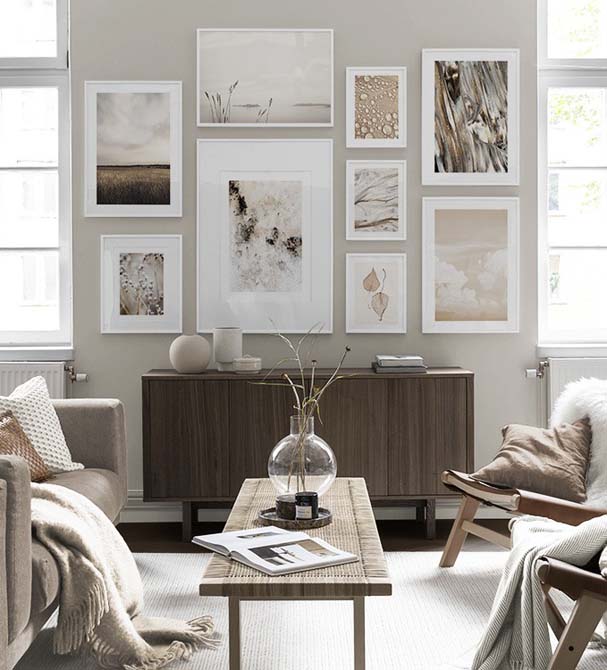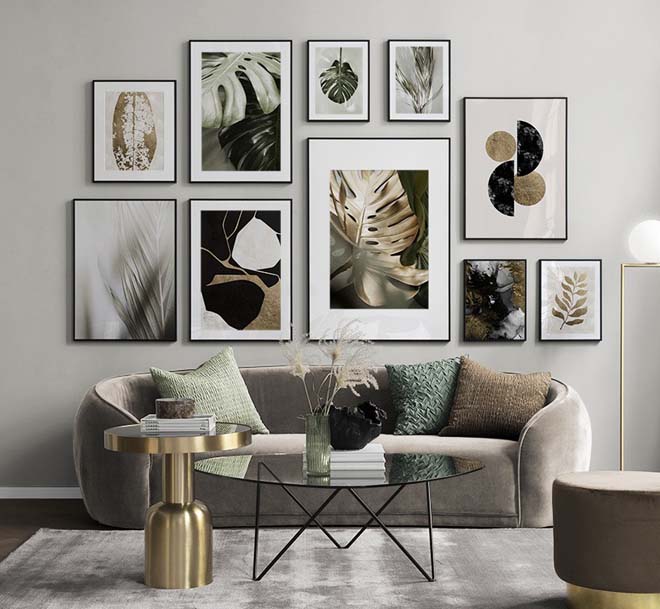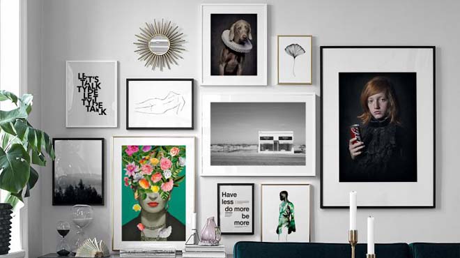- Pri kreiranju grupe fotografija ili umjetničkih slika obratite pažnju da okviri nisu u više od dvije boje, dva materijala ili dva stila