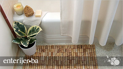Ovaj projekat je odličan za bilo koje kupatilo. Potrebne su samo tri vrste materijala: gumena prostirka, vruće ljepilo i 175 čepova za vino.