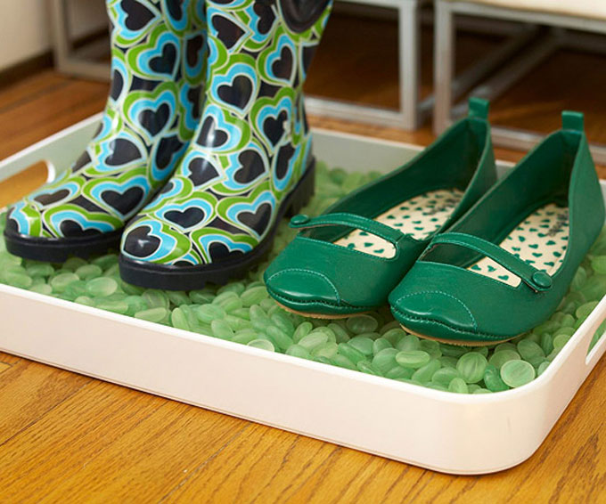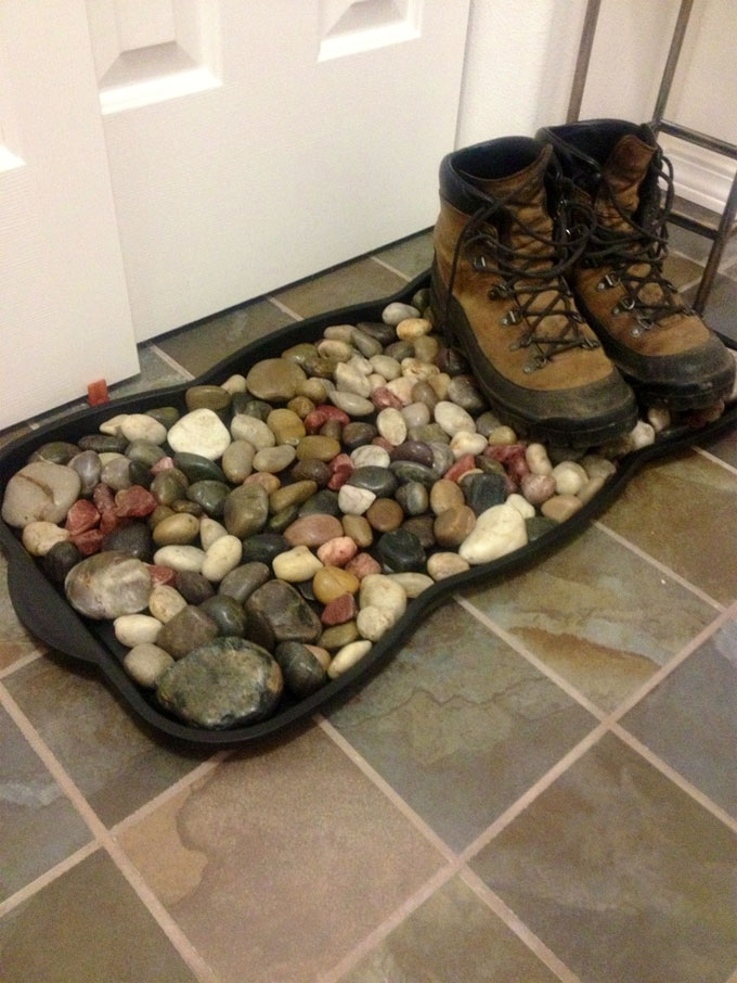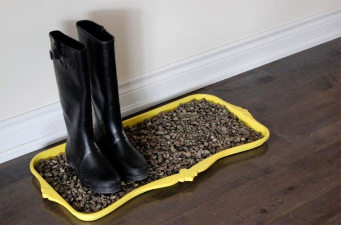 Nakon što se kamenje isprlja od prljavštine sa cipela i čizama, pogotovo u zimskom periodu, istresite ga u lavor i operite deterdžentom. Ostavite ga da se osuši na staroj krpi ili peškiru i ponovo vratite u podmetač koji ste prethodno oprali.