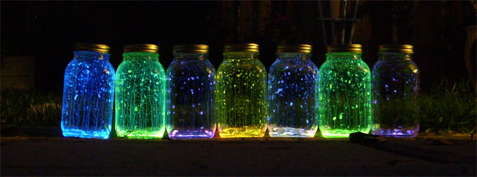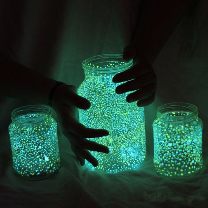 Kupite štapiće koje svijetle u željenim bojama. Otvorite ih i sadržaj saspite u teglu sa poklopcem.