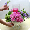 Makazama odrežite cvijeće i zabodite ga u spužvu natopljenu vodom. Pazite da cvijeće bude dovoljno duboko zabodeno, kako bi se moglo snadbijevati vodom.