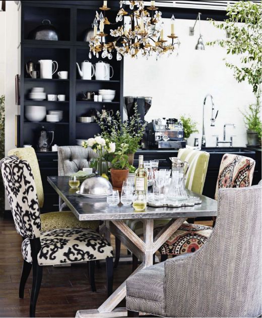 Sto napravljen od modernog stakla bi mogao čudno izgledati okružen "shabby-chic" obojenim stolicama.