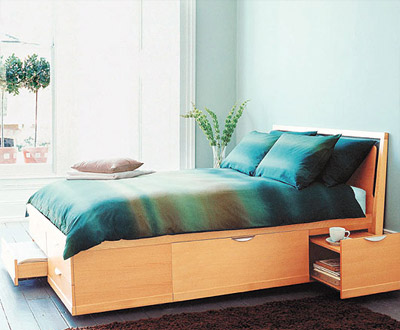 Krevet – divan sa ladicama može biti izuzetno koristan, ali izaberite onaj sa običnom presvlakom, tako da ne morate da koristite posteljinu u obliku zavjesa koje padaju do poda jer možete lakše doći do ladica.