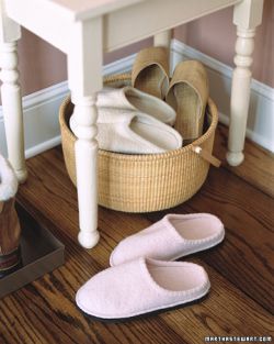 S nadolazećim hladnijim danima sve više i više nosimo papuče. Kako bi sve papuče bile na jednom mjestu, lako dostupne vama ili vašim gostima, stavite ih sve u lijepu dekorativnu korpu u predsoblju. Sam pogled na košaru ispunjenu mekanim udobnim papučama poziva na ušuškane večeri u toplini doma dok napolju veje snijeg.