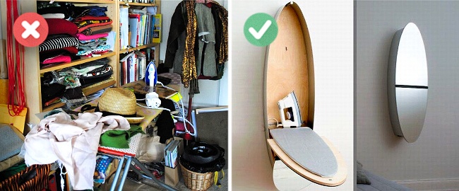 Neki ljudi koriste daske za peglanje kao mjesto za odlaganje stvari. Međutim, dizajneri insistiraju da dasku sklonite nakon upotrebe. Mnoštvo je mogućnosti da je držite sklonjenu iz vida, kao što je ovaj sklopivi model.