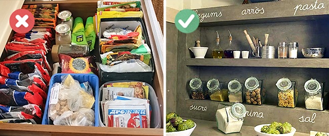 Teško je povjerovati, ali začini, bilje i ulje mogu biti uredno složeni bez brojnih paketa i konzervi. Čim kuhinju organizujete na odgovarajući način, proces pripreme hrane će se pretvoriti u zadovoljsvo, a prostorija će izgledati urednija i čišća.