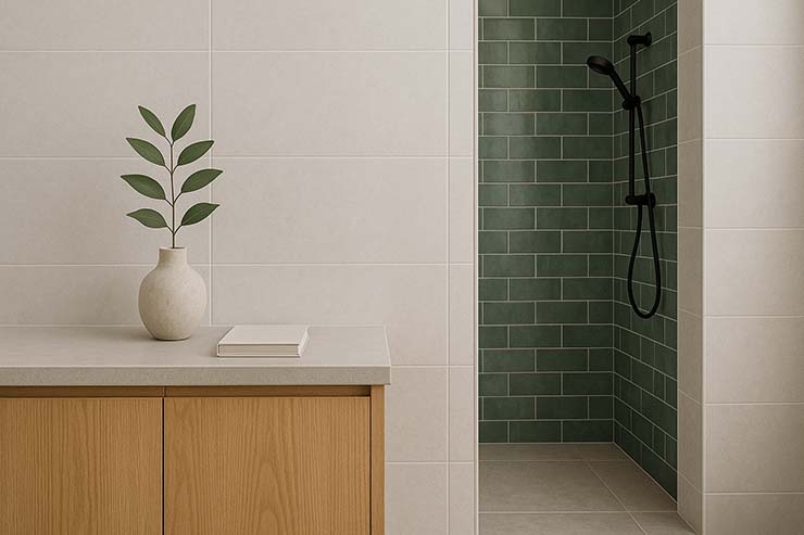 U skladu s aktuelnim trendovima minimalističkog i skandinavskog dizajna, svijetle pločice i neutralne nijanse (poput bež, svijetlosive i bijele) odličan su izbor za manje prostore jer ih vizuelno otvaraju i čine prozračnijim. Ako želite unijeti kontrast, tamne pločice koristite kao akcent — recimo, na jednoj zidnoj površini ili unutar tuš kabine.