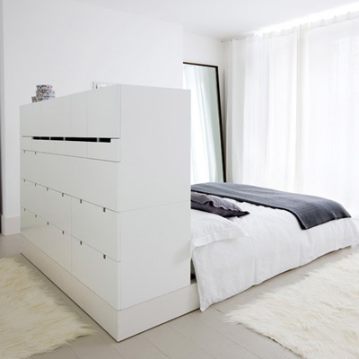 Stavljanjem kreveta na sredinu sobe dobijate prostor za odlaganje stvari iza njega.