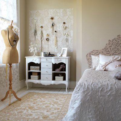 Izložite svoje stvari tako što ćete dodati čipkani uzorak na zid i prikačiti kuke za njega - odličan način za pokazivanje nakita.