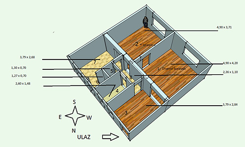 Što se tiče estriha na podu, obzirom da je međuspratna konstrukcija od drvenih greda, moja je preporuka da ne stavljate cementni estrih, koji je zbog agregata i armature težak za ovu konstrukciju. Umjesto toga, možete staviti suvi estrih od gotovih ploča koji zbog materijala od kojeg je načinjen i male debljine nije velike težine.