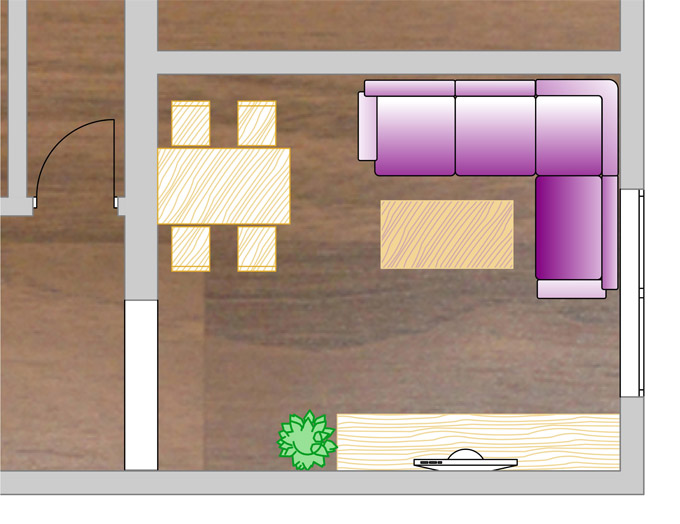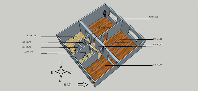 Zamolio bih Vas, ukoliko ste u mogućnosti, da nam pomognete oko ideje kako organizovati trpezariju i dnevni boravak u prostoriji dnevnog boravka od cc20m2. Tlocrt stana na kojem se nalaze dimenzije dnevnog boravka Vam šaljem u prilogu - dnevni boravak 1 i mala korekcija na slici je da su vrata sa lijeve strane kada se uđe u dnevni boravak zatvorena (zazidana). Dužina dnevnog boravka je 4,90 a širina 4,20.