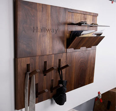 Ulazni prostor upotpunite plakarom za odlaganje jakni, kaputa i obuće. Da biste vizuelno povećali prostor, za fronte vrata plakara odaberite ogledala. Zid možete učiniti zanimljivim sa pločom za vješanje kao što je prikazano na fotografiji ispod.