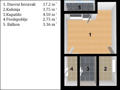 u prilogu se nalazi tlocrt garsonjere kojoj je ukupna površina 28 m². Planira se kupovati novi namještaj. U garsonjeri će živjeti jedna ženska osoba u pedesetim godinama.