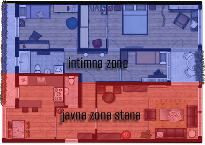 U prilogu Vam dostavljam zoning plana sa podjelom na javni i intimni dio stana te malo izmijenjenu dispoziciju prostorija s čišćim hodnim linijama.