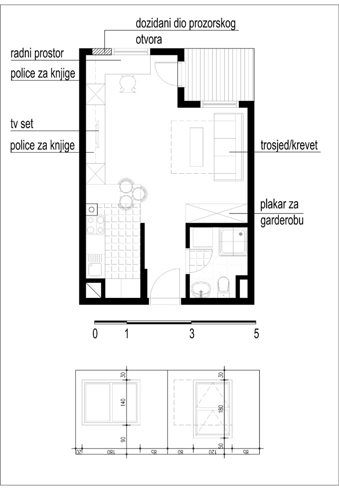 Stručni saradnik Damir Halilović napravio je funkcionalnu organizaciju garsonijere od 33 m² u kojoj će živjeti jedna osoba.