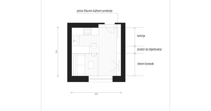 Iako sam imao težak zadatak, da u svega cca 16 m2 smjestim kuhinju, prostor za objedovanje i dnevni boravak, mislim da sam uspio.