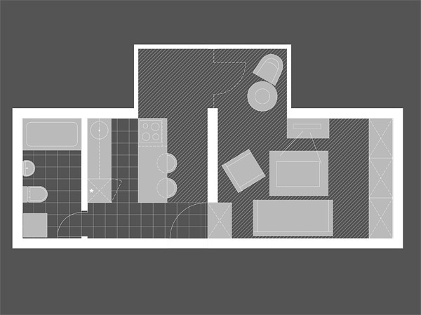 Budući da niste naveli koliko osoba će živjeti u stanu koji ste poslali, nisam znala Vaše potrebe, tako da je organizacija prostora data kao optimalno rješenje u datom prostoru – prostor za život jedne do dvije odrasle osobe.
