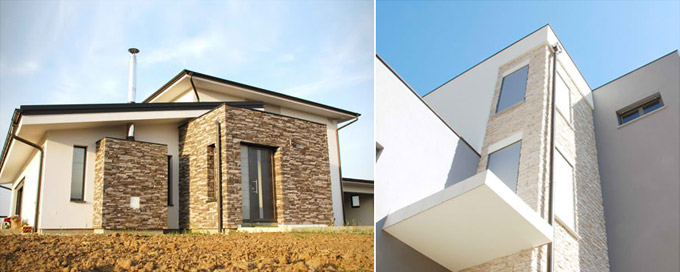 Na taj način olakšavate orijentaciju i razbijate monotoniju čisto bijele fasade. Ne bih Vam predložila da pravite nagle besmislene prelaze, gdje je jedna polovina kuće bijela a druga smeđa (kao što je prikazano na Vašoj fotografiji). Dakle, prelaze pravite na pregibima ili površinama različite dubine. Priložene fotografije će Vam bolje dočarati moje savjete, a mogu, također, poslužiti kao dodatna inspiracija.