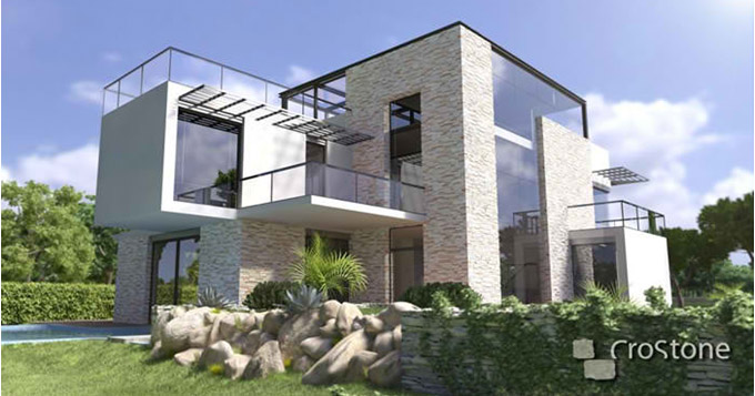 U prilogu vam šaljem nekoliko fotografija svoje buduće kuće, koja bi se uskoro trebala početi graditi. Projekt je napravljen, a fotografije su izrađene u autocadu. Radi se o tome da bismo htjeli kuću koja je više "kamena", ali ju želimo „razbiti" sa nekoliko detalja smeđe fasade.