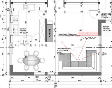 Molimo za savjet. U pitanju je organizacija dnevnog boravka u kući. Naime, centralnu tačku nam čini kamin, sa kojim smo jako zadovoljni. Bilo je predviđeno da na kaminu bude i TV set, ali smo odustali od toga.