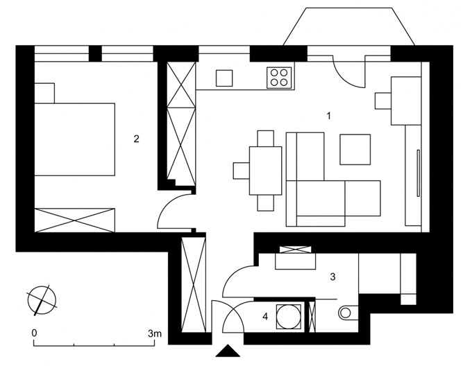 Uz odgovor Vam dostavljam i primjer rekonstrukcije stana (Rules Architects, Bratislava) gdje se u novoprojektovanoj osnovi vidi kako može izgledati dnevna zona sa objedinjenom kuhinjom, trpezarijom i dnevnim boravkom, te u zoni kupatila možete vidjeti dobro riješeno kupatilo i WC – zajedno, a ipak odvojeno.