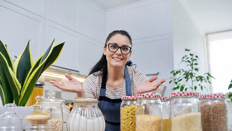 Staklenke raznih veličina možete kupiti, ali nije loša ideja reciklirati stare u kojima je bila zimnica. Dobro ih operite, skinite naljepnice, osušite pa rasporedite namirnice u njih. Da bi znali što je u kojoj često vam ne trebaju naljepnice jer se radi o staklu kroz koje se vidi što je unutra. Ipak, kod, naprimjer brašna nije loše napisati o kakvom se radi, je li oštro ili glatko.