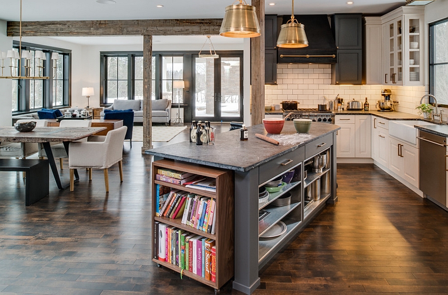 Ko kaže da se u kuhinji mora samo kuhati? Zašto ne biste iskoristili otvorene police za kuharice i časopise kao odlično mjesto za inspiraciju i nadoknadli recepte kao i kuhinjske enterijere.