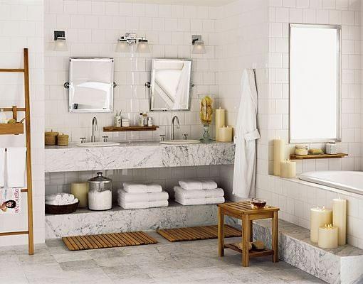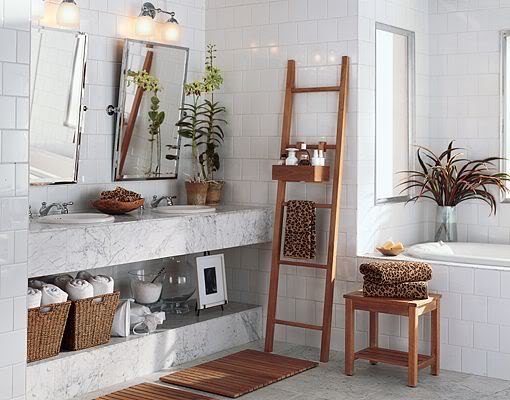 U kupatilu uvijek ima neiskorištenih površina koje možemo dobro iskoristiti. To su prostor iznad kade, WC šolje i mašine za veš, površina iznad ogledala... Upotrebne predmete, kao što su peškiri živih i različitih boja, lijepe bočice i kutije za kozmetičke preparate, iskoristimo kao ukras prostorije. Izloženi na policama dat će prostoriji privlačnost.