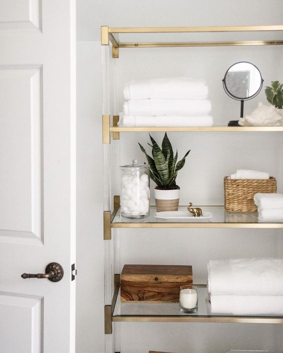 Elementi s policama zauzimaju vrijedan prostor na podu, što u malim prostorijama može stvarati poteškoće. Ako je tako, potražite ormarić podignut iznad poda, tako da se stvari mogu smjestiti ispod njega ili izaberite element sa staklenim policama koji djeluje prozračnije.