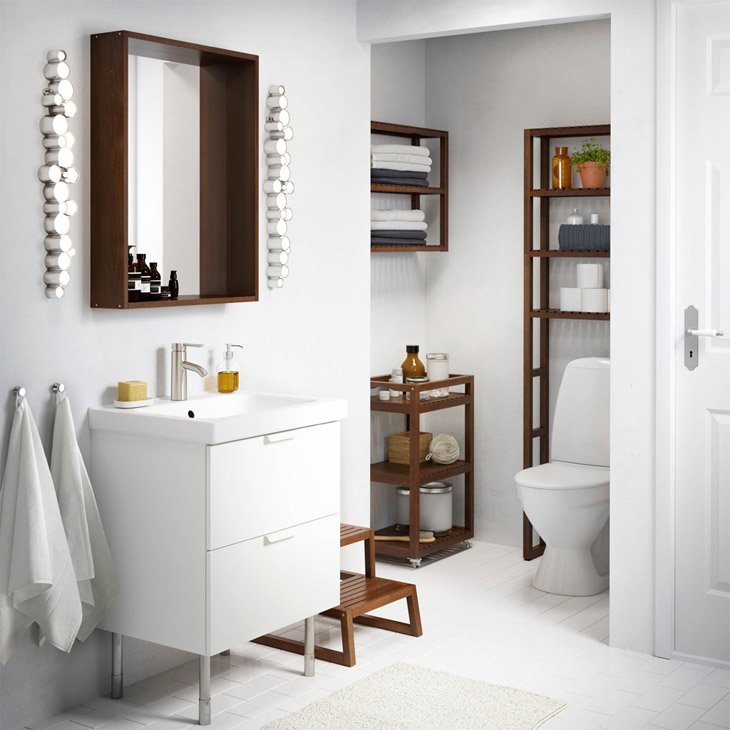 U malim su kupatilima dobro rješenje ugrađeni i slobodnostojeći umivaonici s prostorom za spremanje ispod njih. Police bi trebale lako kliziti unutra i van, tako da im po potrebi lako podešavate visinu, budući da se toaletne potrepštine, kozmetika i toaletni pribor jako razlikuju visinom i oblikom.